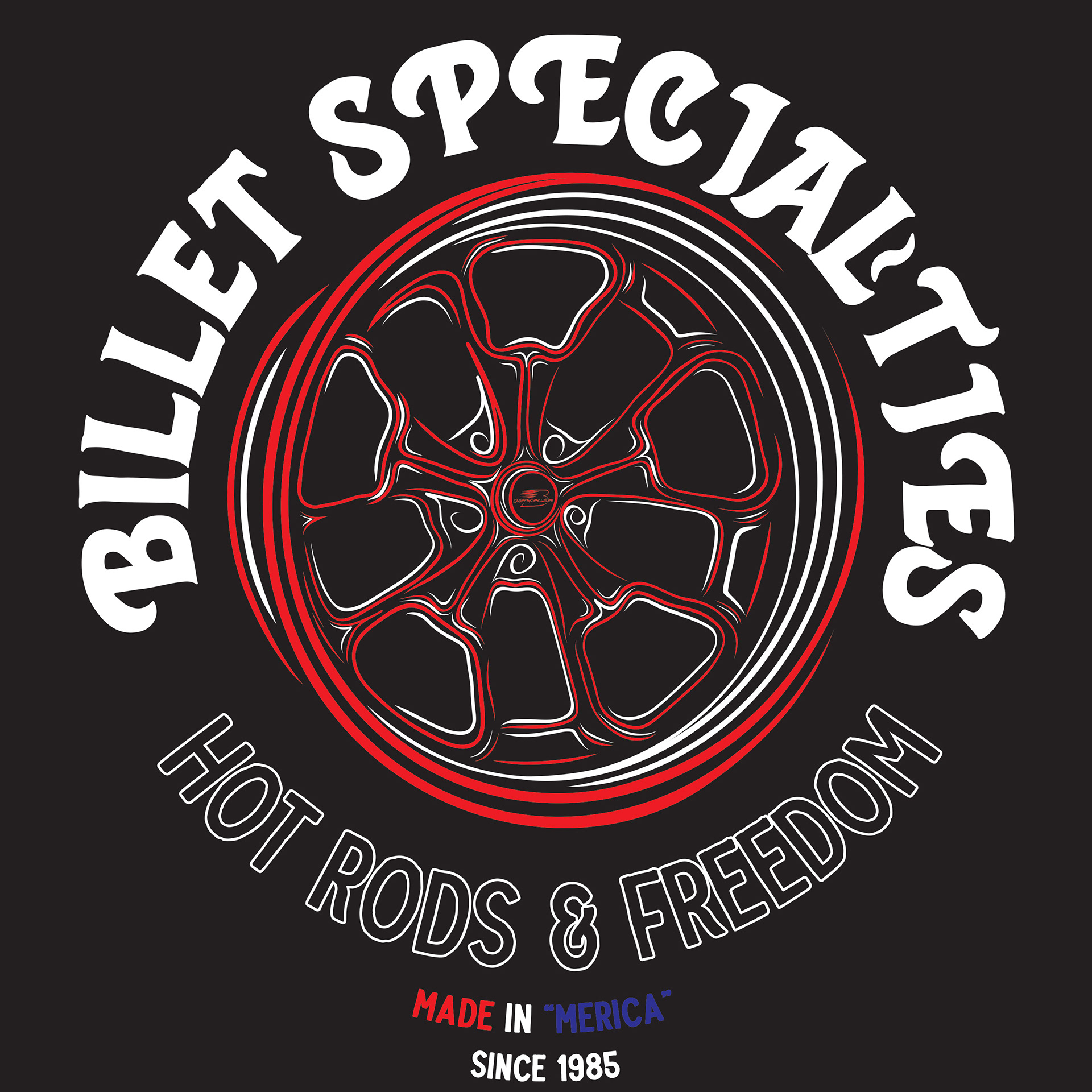Illustrator, drawing from hot-rod pinstriping to combine wheel artwork with nostalgic typography. Three-color palette; delivered screen-print-ready separations.